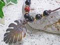 ■素材:モンステラ/黒蝶貝、赤サンゴ(スポンジ珊瑚)、ワックスコットン/ブラウン、ウッドビーズ/黒檀(コクタン)、メタルビーズ