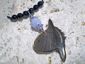 この「マンボウ」のパーツと天然石の「ブルーレース」「オニキス」を組み合わせて、当店で心を込めて手作りしたネックレスです。