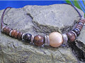 ■素材:夜光貝、水牛の革(直径1.5mm)/ブラウン、ウッドビーズ/黒檀(コクタン)、キャストピューター