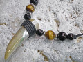 ■素材:夜光貝(ヤコウガイ)、ワックスコットン/ブラック、天然石/タイガーアイラウンド(直径約8mm×2)・オニキスラウンド(直径約8mm×2、約6mm×4)、メタルビーズ