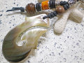 ※黒蝶貝のフィッシュフックのパーツは天然素材を使用し手作りしておりますので、お届けいたします商品は、個々に色合いや形状が写真とは多少異なります。(サイズにつきましては、写真とほぼ同サイズのパーツを使用しております。)