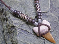 ■素材:鮫(さめ)歯/化石、ワックスコットン/ブラウン、ボーン(水牛の骨)ビーズ、ウッドビーズ/黒檀(コクタン)、キャストピューター