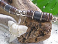 ■素材:メジロザメの歯、合皮/2mm、クレイ(粘土)ビーズ、ココナッツビーズ、メタルビーズ