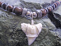 ■素材:メジロザメの歯、合皮(直径2mm)/ブラック、ボーン(水牛の骨)ビーズ、ウッドビーズ/黒檀(コクタン)、キャストピューター、メタルビーズ