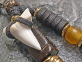 ■素材:アオザメの歯、ワックスコットン/ブラック、ボーン&ホーン(水牛の骨&角)ビーズ、ココナッツビーズ、アンティークゴールドピューター、ブロンズ
