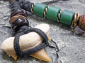 ■素材:サメ歯化石、ワックスコットン/ブラック、クレイビーズ、ボーン&ホーン(水牛の骨&角)ビーズ、アンティークゴールドピューター、メタルビーズ