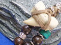 ■素材:サメ歯化石、ワックスコットン/ブラック&ナチュラル、ウッドビーズ/黒檀(コクタン)、クレイ(粘土)ビーズ、メタルビーズ