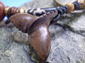 ■素材:木彫りのテール/黒檀、ワックスコットン/ブラック、ボーン(水牛の骨)ビーズ、ウッドビーズ/白檀他、アンティークゴールドピューター、ブロンズ、キーホルダー金具/ブロンズ