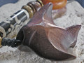 ■素材:木彫りのマンタ/黒檀、ワックスコットン/ブラック、ボーン(水牛の骨)ビーズ、ウッドビーズ/白檀他、アンティークゴールドピューター、ブロンズ、キーホルダー金具/ブロンズ