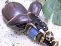 ■素材:木彫りのテール/黒檀(コクタン)、ワックスコットン/ブラック、ボーン(水牛の骨)ビーズ、クレイ(粘土)ビーズ、ココナッツビーズ、ウッドパーツ/黒檀、アンティークゴールドピューター